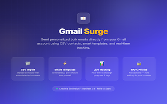 Gmail Surge, kullanıcıların verimliliğini artırmaya yardımcı olmak için tasarlanmıştır. Kullanıcı dostu arayüzü sayesinde e-posta gönderme işlemleri hızlı ve basit bir şekilde gerçekleştirilebilir. Chrome'un yerleşik OAuth akışı ile güvenli bir şekilde çalışarak, kullanıcıların gizliliğini korur ve e-posta gönderim sürecini sorunsuz hale getirir.
